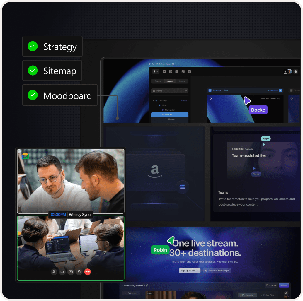 We start with a moodboarding session to align on look, feel, typography, and direction. You see a concept board before we touch a single screen. No big reveals, no wasted rounds.