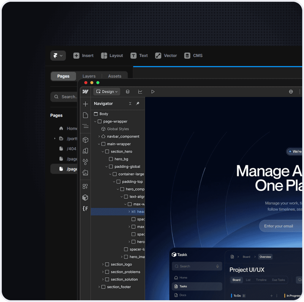 Once the homepage is locked, we move into the rest of the site, designed and built in Framer or Webflow. Clean code, fast load times, SEO-ready from day one.